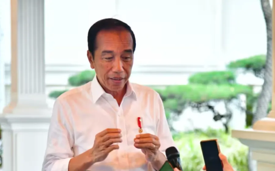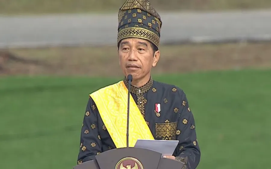 Siberzone.id - Presiden RI Joko Widodo mengenakan pakaian adat Melayu Riau lengkap saat menjadi Insp