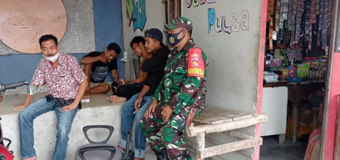 Seperti terlihat saat ini, Sertu M. Afandi salah satu anggota Satgas TMMD Reguler Kodim Pati sedang melakukan kegiatan komunikasi sosial dengan pemuda warga Dukuh Kalimati, Desa Tamansari, Kecamatan Jaken, Kabupaten Pati yang sedang berkerumun di dekat sebuah warung kopi.
