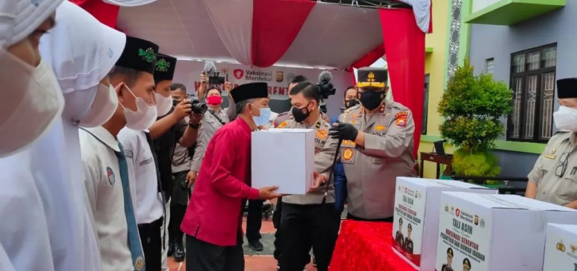 SiberZone.id, BENGKULU – Pastikan kesuksesan program vaksinasi Merdeka Rafflesia sebagai upaya kepolisian melakukan pencegahan dan penanganan pandemi covid-19 sesuai dengan kebijakan Pemerintah Republik Indonesia, Kapolda Bengkulu Irjen Pol Drs Guntur Setyanto, M.Si, pagi hari ini Selasa (07/09) melakukan peninjauan secara langsung kegiatan vaksinasi yang berlangsung di Pesantren Pancasila Kota Bengkulu.