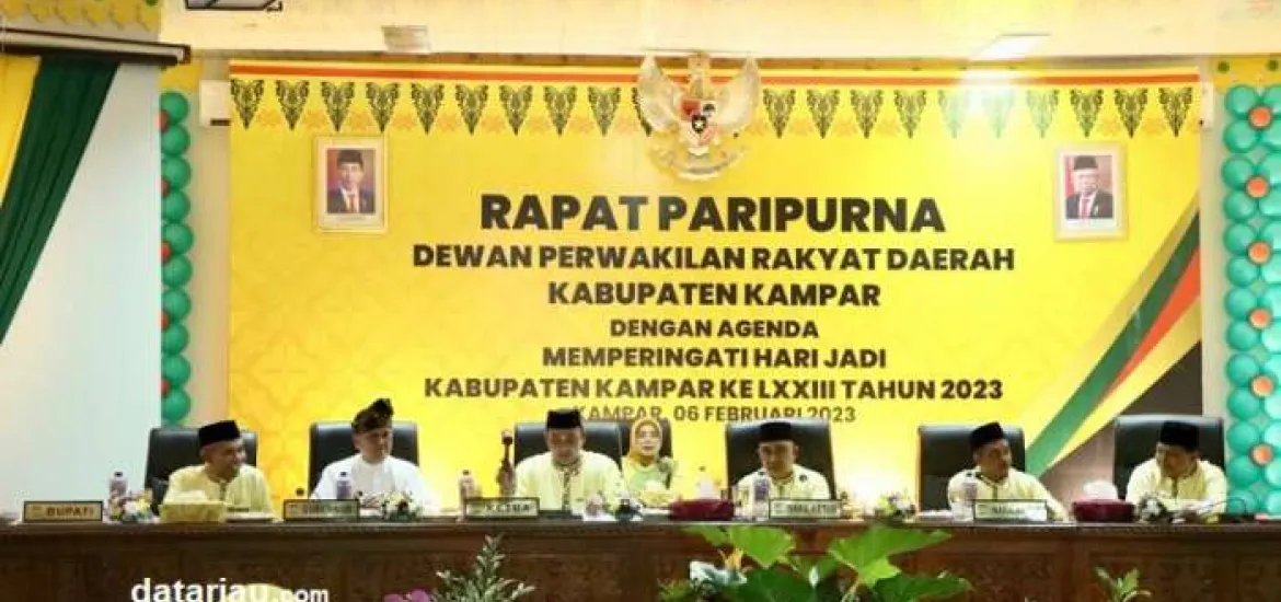 SiberZone.id - Peringatan Hari Jadi ke-73 Kabupaten Kampar Tahun 2023 diperingati secara khidmat dalam rapat paripurna istimewa DPRD Kabupaten Kampar yang dipimpin Ketua DPRD Kabupaten Kampar Muhammad Faisal ST di Gedung DPRD Kabupaten Kampar, Senin (6/2/2023).